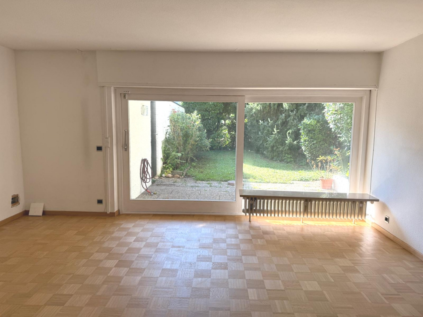 Die Wohnung ist wie folgt aufgeteilt: ein großes helles Wohnzimmer mit Zugang zur Terrasse und Garten, eine Küche mit Küchenzeile, ein ruhig gelegenes Schlafzimmer, ein Arbeits/-oder Ankleidezimmer sowie eine Badezimmer mit ebenerdiger Dusche und Glasabtrennung sowie 2 Waschbecken.
